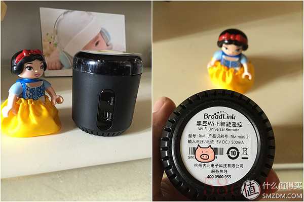整个小黑豆长的还算圆润,全身采用黑色塑料,不过我始终没有看出哪里像豆子——估计应该是形容个头小。顶部是半透明的发射端,下端有均匀的散热孔。整体没有多余的接口,正前面仅一个指示灯,后面一个USB电源口和复位孔。