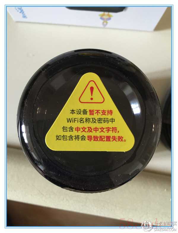 醒目的黄色标志,不支持中文字符。顶部有使用透明胶带保护,但是可见灰尘和不少气泡。