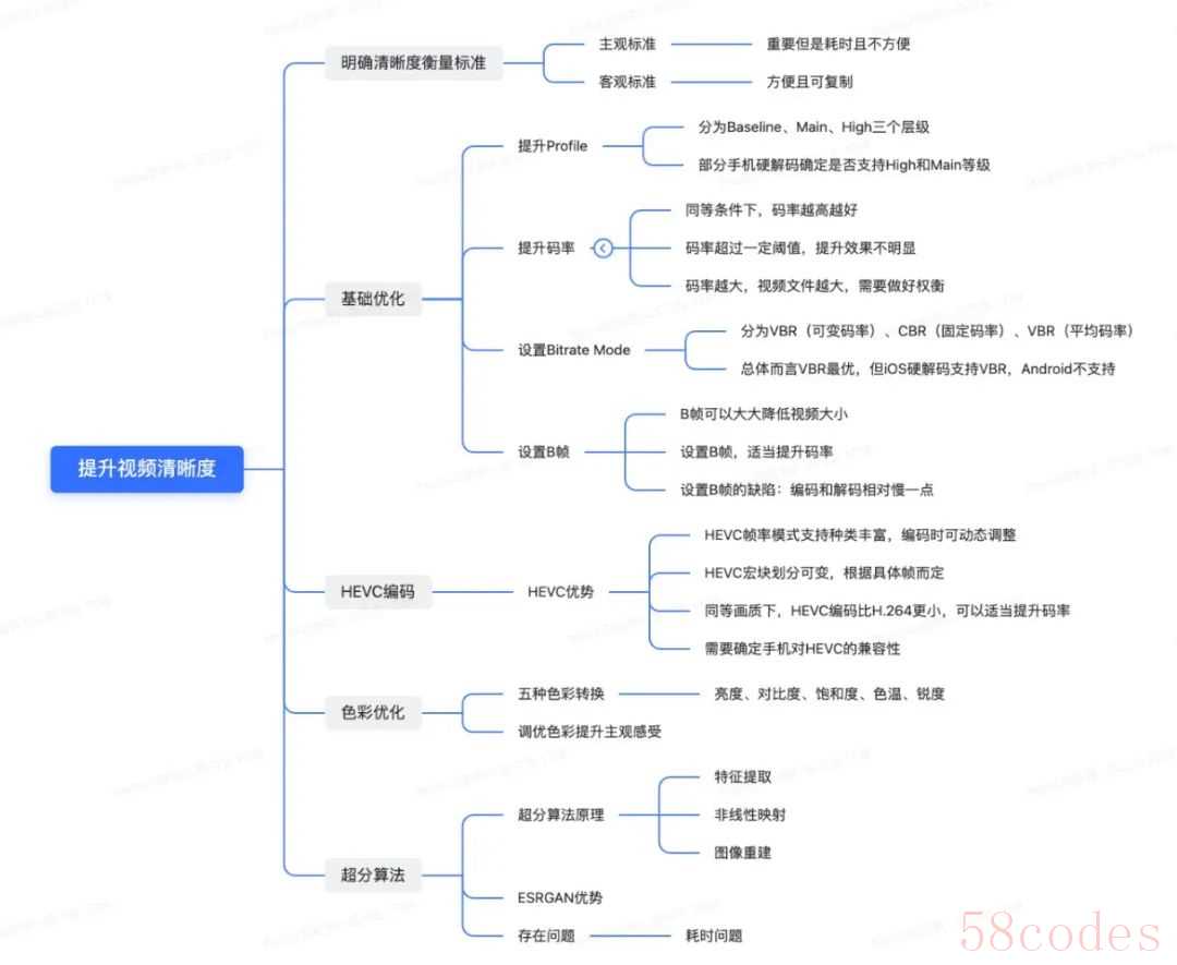 随着移动互联网的深入发展,视频消费场景逐渐变成主流,早期由于手机硬件的限制问题,导致生产出来的视频画质、清晰度存在较大的问题,用户体验不太好,当时的网络也处于4G的发展阶段,网络的限制也无法持续支持高清视频的消费,但是现在5G发展地如火如荼,网络的高速发展,手机硬件性能的提升,用户越来越不满足于低画质和低清晰度的视频。提升视频的画质和清晰度势在必行,需要一套行之有效提升视频清晰度的优化方案。