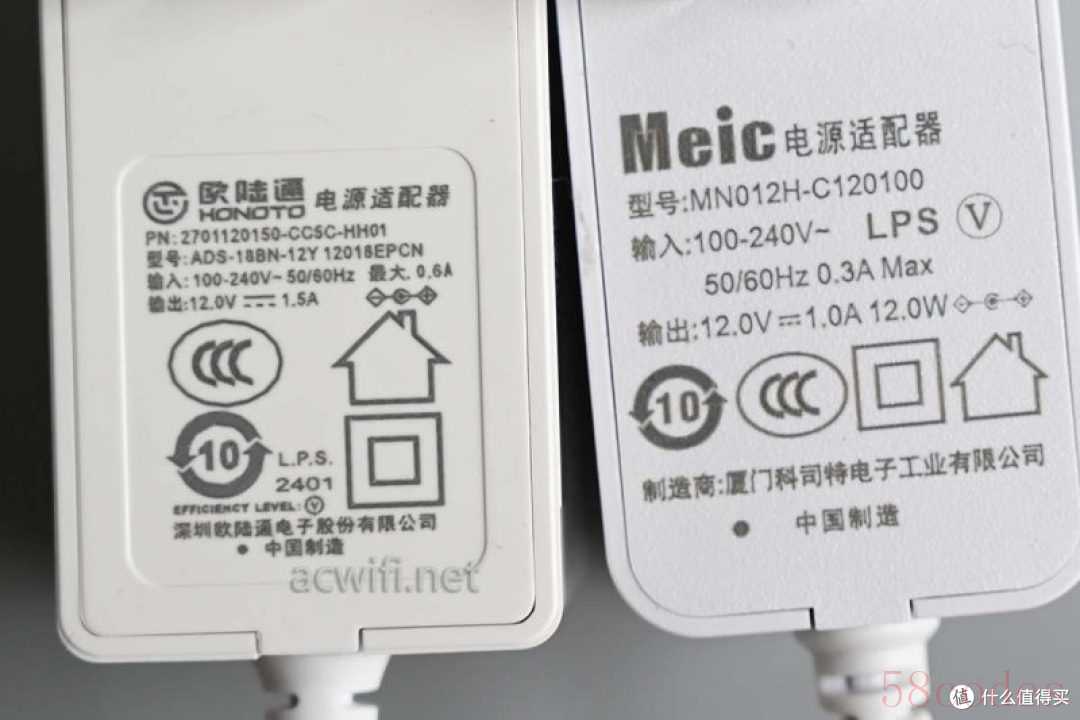 下图左边是F7615TV3的电源,右边是F7015TV3的,因为7615带无线Wi-Fi,所以电源给得大一些,合理。