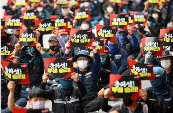 韩罢工结束,政府无奈延长薪资保障根据韩国相关部门统计数据,由于罢工的影响韩国六月上旬的出口较去年同期下降12.7%,尤其是对美国的出货量下降23.3%。这期间韩国的贸易逆差达到60亿美元。6月7日至12日汽车、钢铁、石化、水泥等主要行业的生产、出货、出口损失达1.5868万亿韩元(约合人民币84亿元)韩国海关统计。