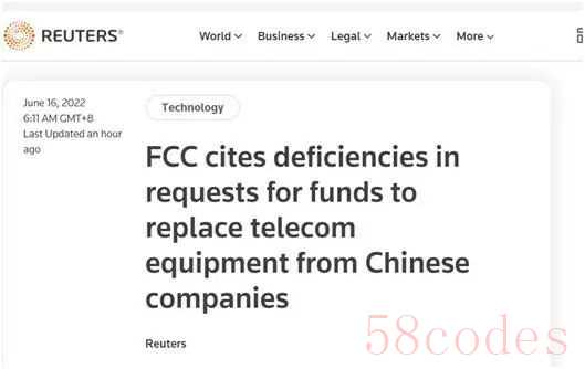 路透社:FCC称,为拆换中企电信设备的资金申请存在缺陷去年7月,FCC通过一项19亿美元的计划,为拆除华为、中兴等中企设备的美国通信运营商提供补偿。这一计划出台后,就有外媒评论说,19亿美元的“补偿资金”可能不够。
