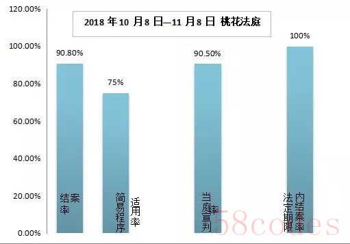 2018年10月8至11月8日,两个团队收案分别为357件和309件,结案149件和147件,简易程序适用率75%,当庭宣判率90.5%,法定期限内结案率100%。
