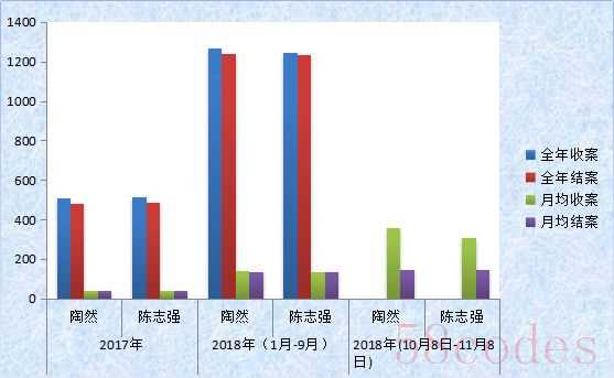 2018年1 -9月,两个审判团队收案分别为1266件和1244件,结案分别为 1242件和1236件,月均收案分别为140.6件和138.22件,月均结案分别为138件和137.3件。