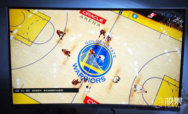 显示器安装点亮之后,就直接连接上 Xbox One,因为除了曲面之外,这款显示器另一个亮点是,支持 FreeSync Over HDMI。游戏玩家多少都遇到过显示器显示画面卡顿的现象,而这种现象大部分原因就是因为刷新率和显卡帧率不同步时造成。于是 Nvidia 推出了一项 G-Sync 技术,能够让显示器的刷新率和显卡帧率相匹配,既然 N 家推出了,那么 A 家自然也不能落后,于是相同功效的技术,AMD 就将其叫做 FreeSync。