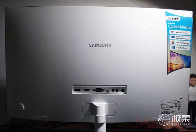 在这款曲面显示器上的设计上,三星想要强调的是圆润的整体视觉感受。以显示器的正面屏幕曲线为核心,背面以曲率更大的球面将其覆盖,包括显示器底座甚至是底座支架,都采用了圆形或者圆柱设计。围绕着曲面屏幕为主题,整个显示器展现了三星对于圆润自然的设计追求。