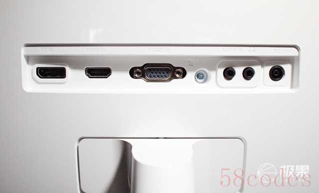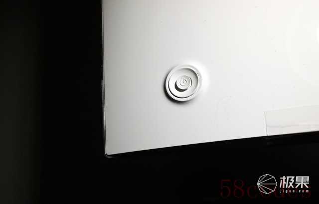 显示器上有且仅有一个的按钮被设计在了屏幕背部,这点在设计有些类似苹果的 iMac。从工业设计角度看,最大的好处就是不容易被勿触,用户碰到这个菜单键的时候,一定是有实际的操作需求,不然没谁会老是把手伸到屏幕后面。当然另一方面也是放在这个位置,不容易被发现并不会破坏屏幕正面的美感。