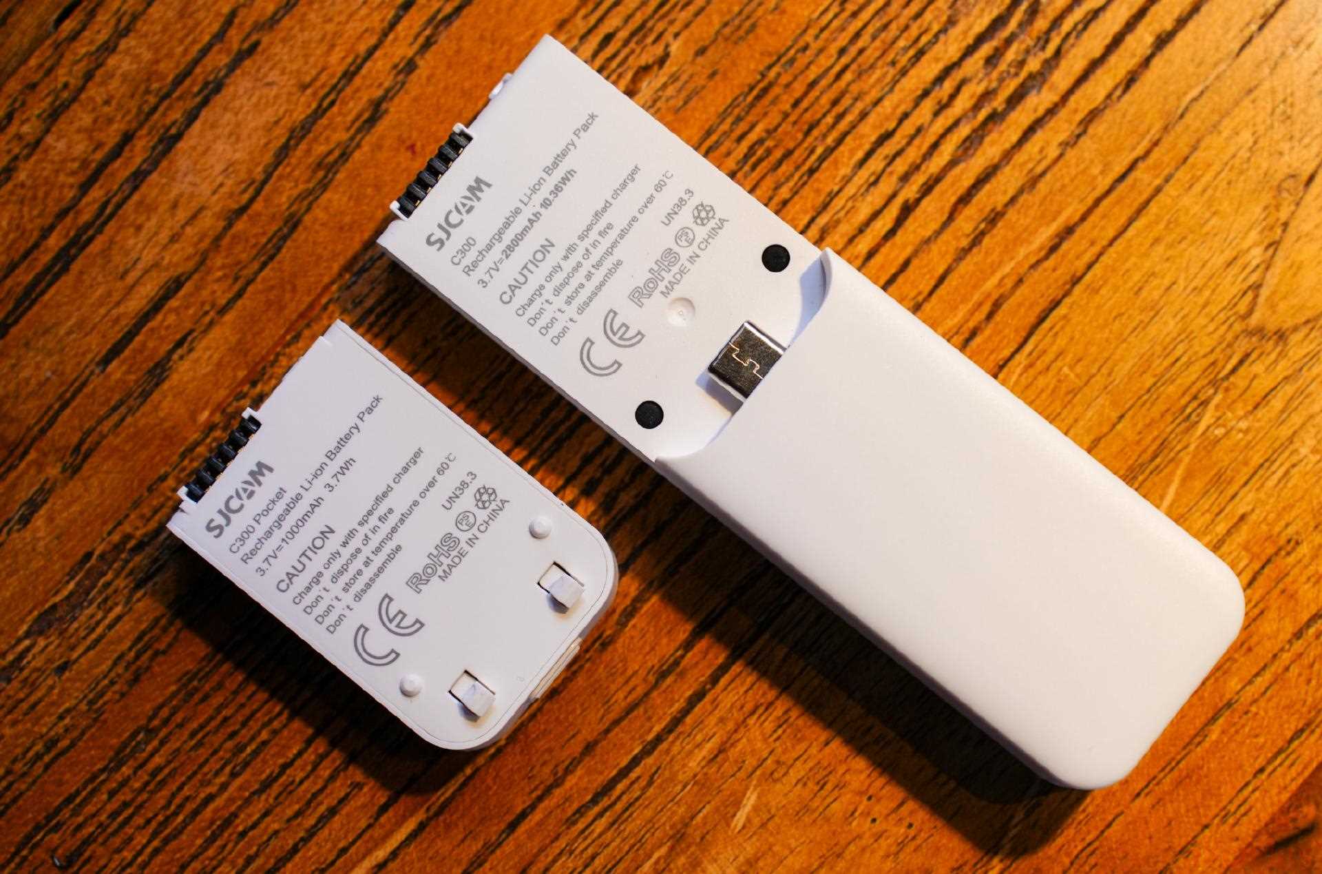 我这次购买的是SJCAM C300的长续航版本,所以配备了2块电池,其中小电池是普通标准版,另外一个带屏幕的则是长续航电池版本。