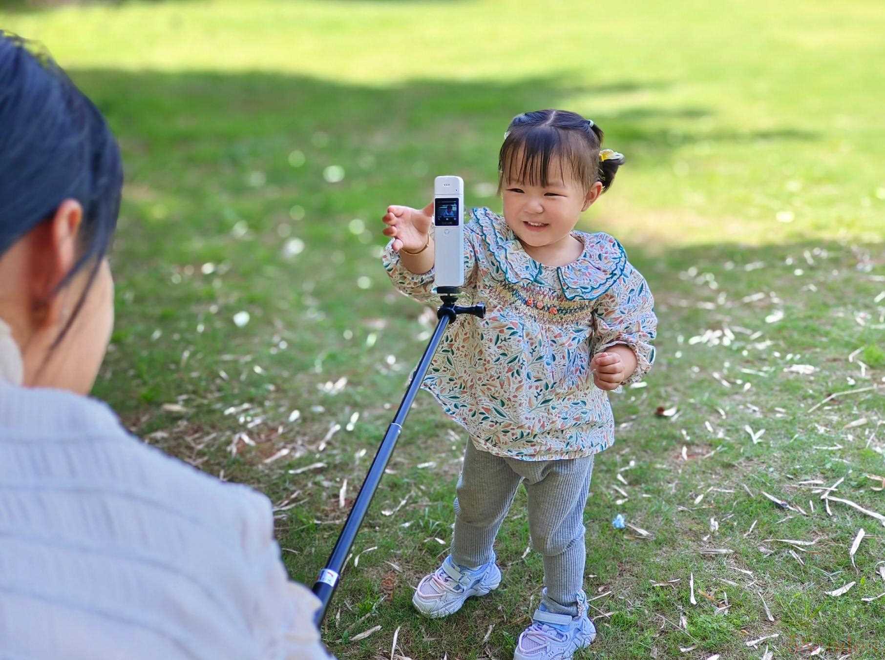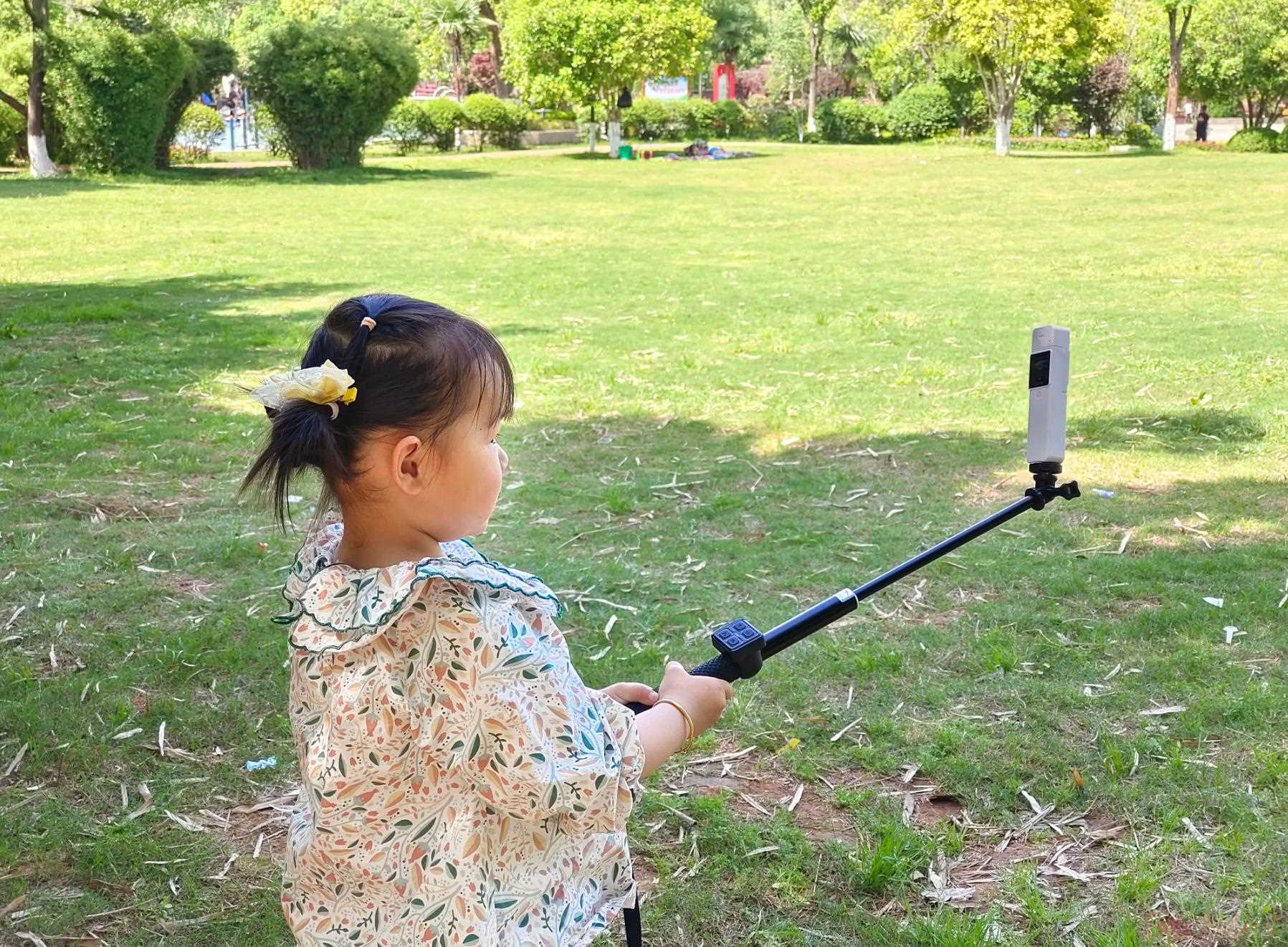 自拍杆的重量方面也比较适中,我家神兽都可以比较轻松的运行操控。