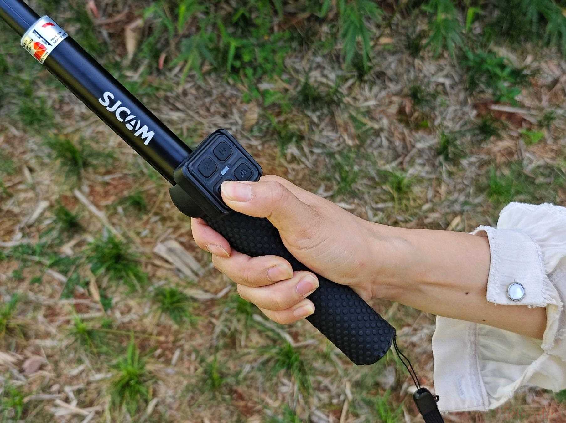 不得不说SJCAM C300原厂的自拍杆配件是非常好用,一扭就可以开启+锁定,同时配备的蓝牙遥控器配件也非常好用,可以实现拍照、摄像、关机功能,还能一键开启WiFi进行手机APP互联。