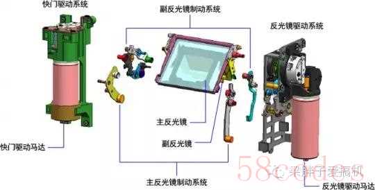 反光镜驱动专用马达和凸轮机构对主反光镜进行减速后,可通过平衡器进一步吸收主反光镜的冲击。副反光镜也配备了平衡器和制动器机构。平衡器可以抵消反光镜动作造成的冲击,通过弯钩或制动器固定反光镜的位置,高速抑制其反弹。