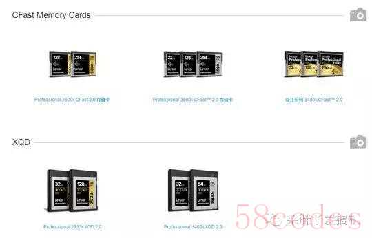目前在支持CFast 2.0有雷克沙、闪迪、创见,而XQD则有雷克沙和索尼(闪迪、索尼、尼康联合开发)。我们可以看到雷克沙是脚踩两条船,旗下产品CFast 2.0速度更高。早在2012年CF卡联盟(简称CFA)就宣布已经开始着手“XQD 2.0”、“CFast 2.0”两大下一代存储卡标准规范的制定工作,并诚邀各行业机构共同参与其中。