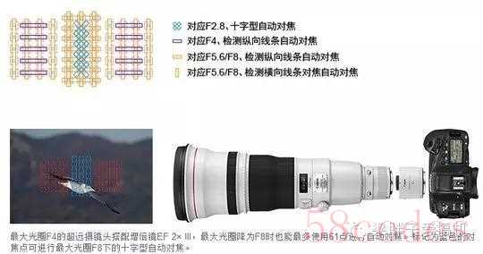 两家相比就能看出,佳能从对焦系统上就让用户购买大光圈镜头(F4以上),配合大光圈镜头时用户才能享受最完整的十字对焦点支持,尼康方面就门槛低得多了,F5.6以上都OK。试想用户在使用EF 400mm f/4 DO IS II USM、EF 400mm f/5.6L USM、EF 500mm f/4L IS II USM、EF 600mm f/4L IS II USM、EF 800mm f/5.6L IS USM、EF 200-400mm f/4L IS USM 1.4X这些“小光圈”大炮时候是享受不到F2.8的对焦感应器(有些甚至部分F4.0也享受不到),这就是为何佳能要标称“最多”的原因。至于谁好谁坏看个人使用了。