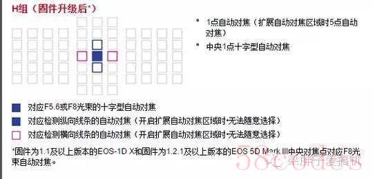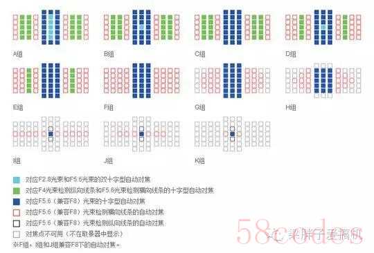 如此看来,就可选对焦点而言,尼康不过是从51点提升至55点,真正提升是中央区域15十字扩展到左中右三区域35个十字!有佳能粉丝会说,这样比尼康的可选对焦点数量、可选十字对焦点数量还没赶上EOS-1D X和EOS 7D Mark II。这里我要强调佳能和尼康在对焦系统的设计理念上并不相同!尼康的对焦点都兼容f/5.6或更大有效光圈。当光圈值小于f/5.6时,在多个场景下也能实现自动对焦。(含9个可选对焦点的15个对焦点兼容f/8有效光圈);反观佳能就复杂得多了,分F2.8、F4、F5.6、F8,除了十字还有双十字。为此佳能还给出了一份《61点高密度网状阵列自动对焦感应器与EF镜头对应表》,用户根据镜头最大光圈(通光量)来查找自己的镜头属于哪个组,有多少十字可以支持。