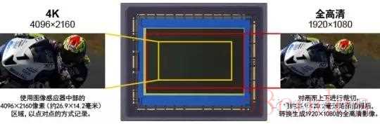 EOS-1D X Mark II进行4K拍摄时,使用的是图像感应器中部的4096×2160像素(约26.9×14.2毫米)区域。因为是以点对点的方式记录(与D5也是如此),所以不会由于转换分辨率而降低画质,能够获得高画质的4K影像。当进行全高清拍摄时,会配合16:9的比例对画面上下进行裁切。用约35.9×20.2毫米范围拍摄后,转换生成1920×1080的全高清影像。通过这样的处理,就可以利用大尺寸图像感应器获得小景深、高画质的全高清影像。 相比之下索尼A7SII、A7RII以全像素读取的方式拍摄,充分利用全画幅影像传感器扩展的表现力。A7RII凭借像素优势更是在Super 35mm模式下,通过使用全像素读取的方式超采样约1.8倍于4K分辨率像素的大量源信息并生成4K视频。就采样来说,跟传感器像素、传感器读取能力有关,无疑像素更高采样率会更高,如果原生支持8K分辨率,超采样4K画质可想而知,此外、佳能、尼康的4K利用中部像素点对点逐点读取的方式是牺牲了全画幅的广视角。