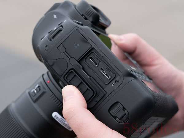 CF和C Fast的存储器位置在相同的舱盖之下。笔者之前没有接触过C Fast卡,目前单机盒中也没有赠送该类型的高速卡,第一次使用时就想将普通的CF插到C Fast卡槽之中,差点就“逗比”了。这里需提醒各位,两个插孔是完全不同的,C Fast卡主要针对有4K动态高要求的视频录像用户,而普通静态用户使用传统的CF卡就足够了,但如果你想一张卡存储JPEG,另一张卡存储RAW格式就 只能花该花的钱了。