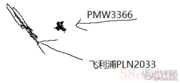 ▲我们将图片放大,从微观图上看,PMW3366出现了很多离散点,而A7700则稳如狗。在实际使用中,A7700带有非常明显的延迟。
