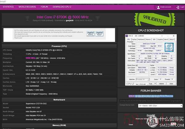 这块主板在我手里能达到的I7 6700K的极限就是5G,5G以上就无法通过倍频来完成,只有通过超外频来解决,由于个人的CPU体质问题,只能拿到一个5G CPUZ的认证。这也间接是个主板超频实力的证明。