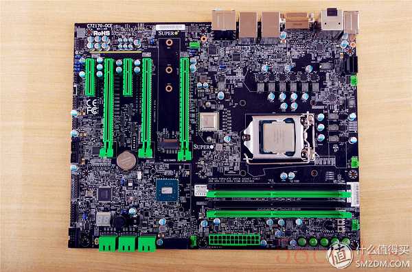 Supermicro(美超微)以工作站服务器主板和相关工业用卡的品质而著名,其主板的特性是耐久、稳定,在业界的口碑也是非常好,只不过一直不拓展民用领域,也鲜见其民用产品,购买也是非常的困难,都得海淘。最近超微也开始调整策略了,开始制造顶级的民用游戏主板,在配色超频用料上面做了一番优化,主打服务器品质的游戏主板概念,其实我前两年在京东商城也看到他们的Z87、Z97系列主板销售,可惜昙花一现,主要是配色太接近服务器主板了,用料并不豪华,和服务器主板几乎区分不开,大家关注度自然也不高。在2015年底超微发力了一款顶级做工的绿毒旗舰Z170主板C7Z170-OCE,我第一眼在tweaktown上看到此款主板的完整评测后就开始遍寻这块主板,终于在1月下旬联系上了去年替我购买过ASROCK X99M KILLER/3.1的台湾沧者极限的基友,替我购买了一片,其中经历比较复杂,DHL过关各种纠结,电话要求明目理由,让我深深感觉国外购物这个层面上,台湾的距离果然并不比美国近,甚至更遥远一些。作为一块大陆买不到的主板,收藏价值可能大于使用价值,我也和大家分享一些使用此主板的经验。估计这东西大部分人也难以购买,国内也没有相关评测,所以我就做个首晒仅供观赏。