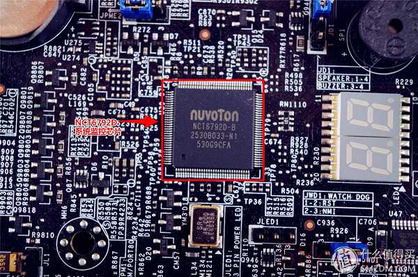NCT6792D系统监控芯片,负责温度电压转速等参数的实时监控。