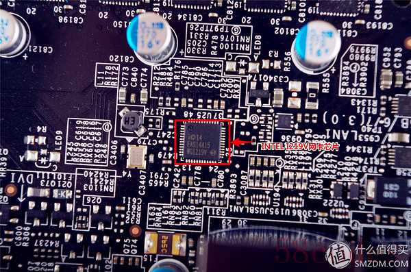 全固态日本化工的电容,无处不在的贴片元件真正武装到了主板的边缘。导致我拿着板子都很小心,生怕手重抠掉了主板边缘的元器件。很多人要问,Z170不是没有北桥的么?怎么北桥有散热片?这个下面会慢慢说。