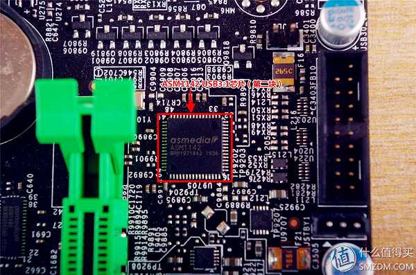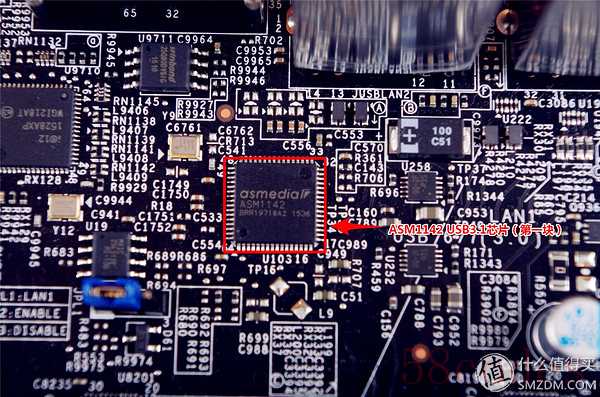 第二块的ASM1142 USB3.1芯片,在PCIE槽附近的是负责对接机箱IO的。