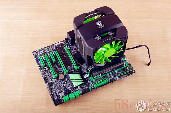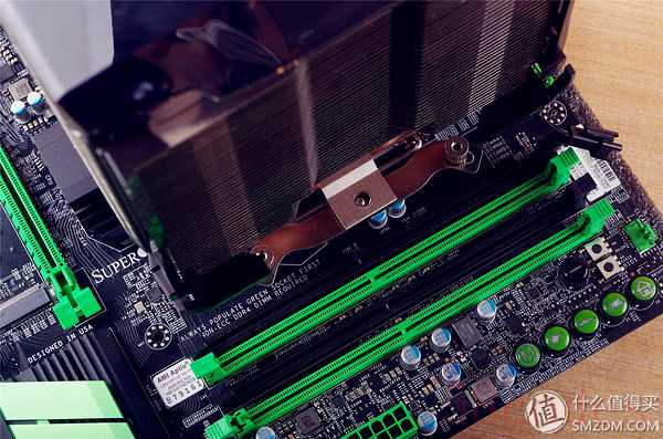 用附带的12CM可移动支架上两个绿色风扇,上好内存收工。因为风扇支架可以任意上移动,所以高马甲内存安装不会逼迫你拆卸散热器风扇,