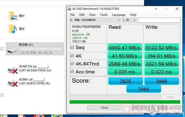 磁盘效能粗评就测了一个镁光MX200 250GB和东芝PX04PMB080 NVME 800GB的AS SSD BENCHMARK
