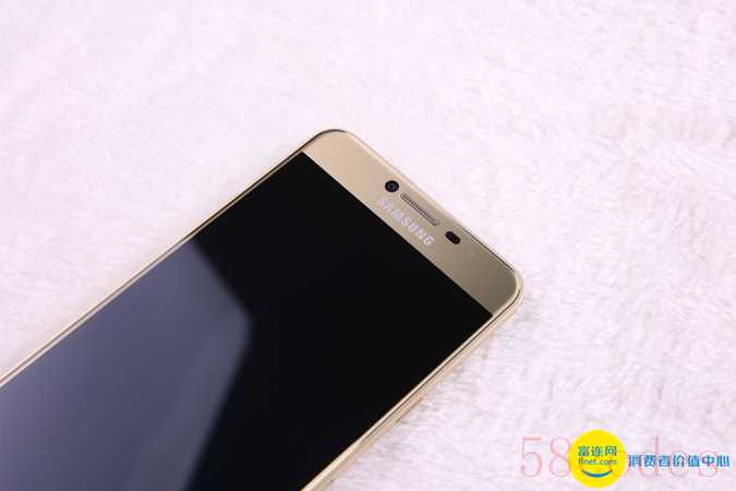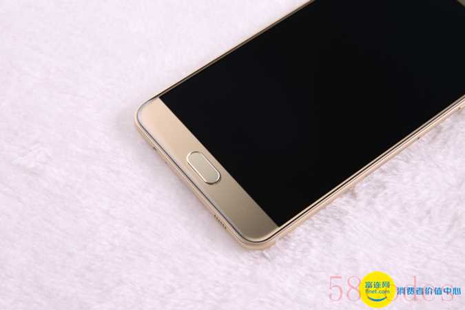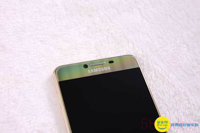 Galaxy C7的正面维持了三星手机一贯的设计语言,上方的Logo、下方的实体键三天王的布局都让人无比熟悉,2.5D玻璃的弧度正如C系列的宣传一样“刚刚好”、不会喧宾夺主。且金色的底色让小编有种拿着Galaxy Note 5的错觉(屏幕尺寸一模一样),拿去商务场合也绝不失礼。
