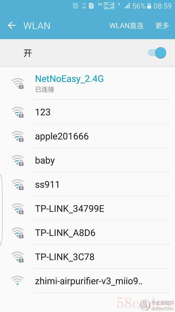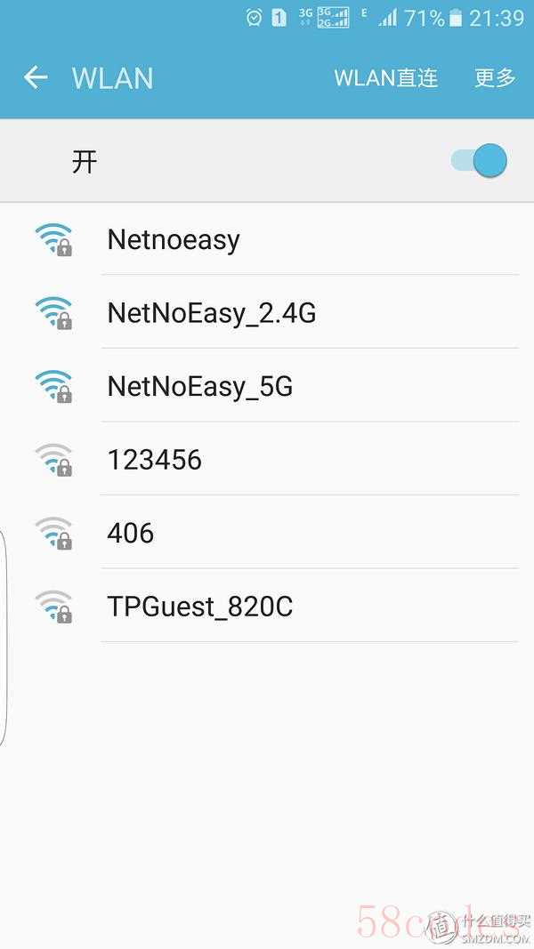 前三个分别为老路由器和新路由器的两个频段wifi,信号均满满的。
