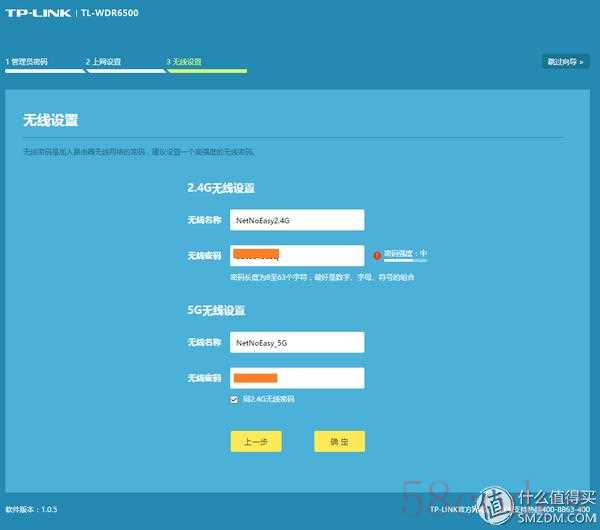 输入账号密码进入无线设置页面,因为该路由器为双频路由器,所以会出现两个WIFI,密码可相同也可不同
