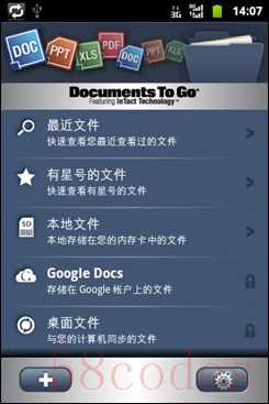华为C8650还有Documents To Go文档预览及编辑工具,手机也能成为移动办公的一部分,该软件可以快速浏览本地文件或最近打开过的文件,简单的编辑,修改是没有问题的,使得用户在手机上都能快速办公。