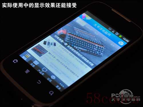 在屏幕方面,华为C8650算是中规中矩,使用的是一块3.5英寸分辨率为320x480像素(HVGA级别)的电容屏幕,材质为常见的TFT。虽然分辨率不高,但实际使用中华为C8650的显示效果还是能接受的。只是TFT材质屏幕在强光下表现还是有待提高。
