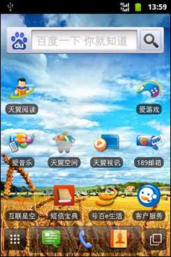 当然,作为电信定制手机,华为C8650还拥有丰富的电信内置应用,其中包括天翼空间,爱音乐,天翼视讯,189信箱,互联星空,号百e生活,天翼阅读,爱游戏等内容。