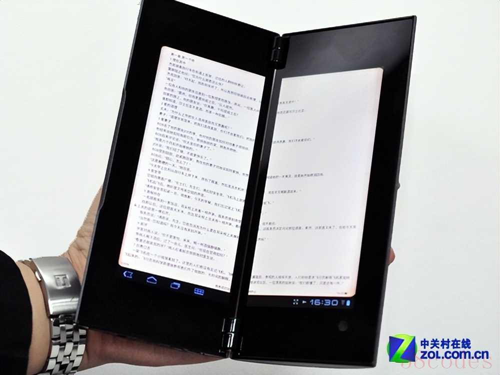 Tablet P支持双屏合并显示与分屏操作:电子书竖立展开模拟实体书,阅读电子书时垂直显看,就像看书般具有左右两页,看起电子书时就有类似观看纸本书的感觉。游戏分屏扩展操控界面,多媒体播放分屏控制。