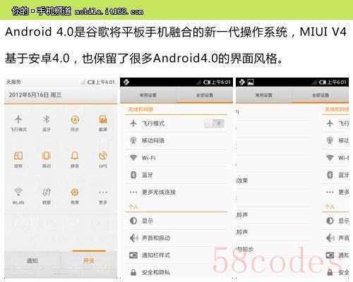 其实,V4时的MIUI,是小米崛起的开始。MIUIV4作为小米手机2青春版的内置系统,得到了很多人的认可。V4版本在性能上做了很多的优化,并且在系统设置方面,将类别区分,这样大大减少了用户操作时的困难。