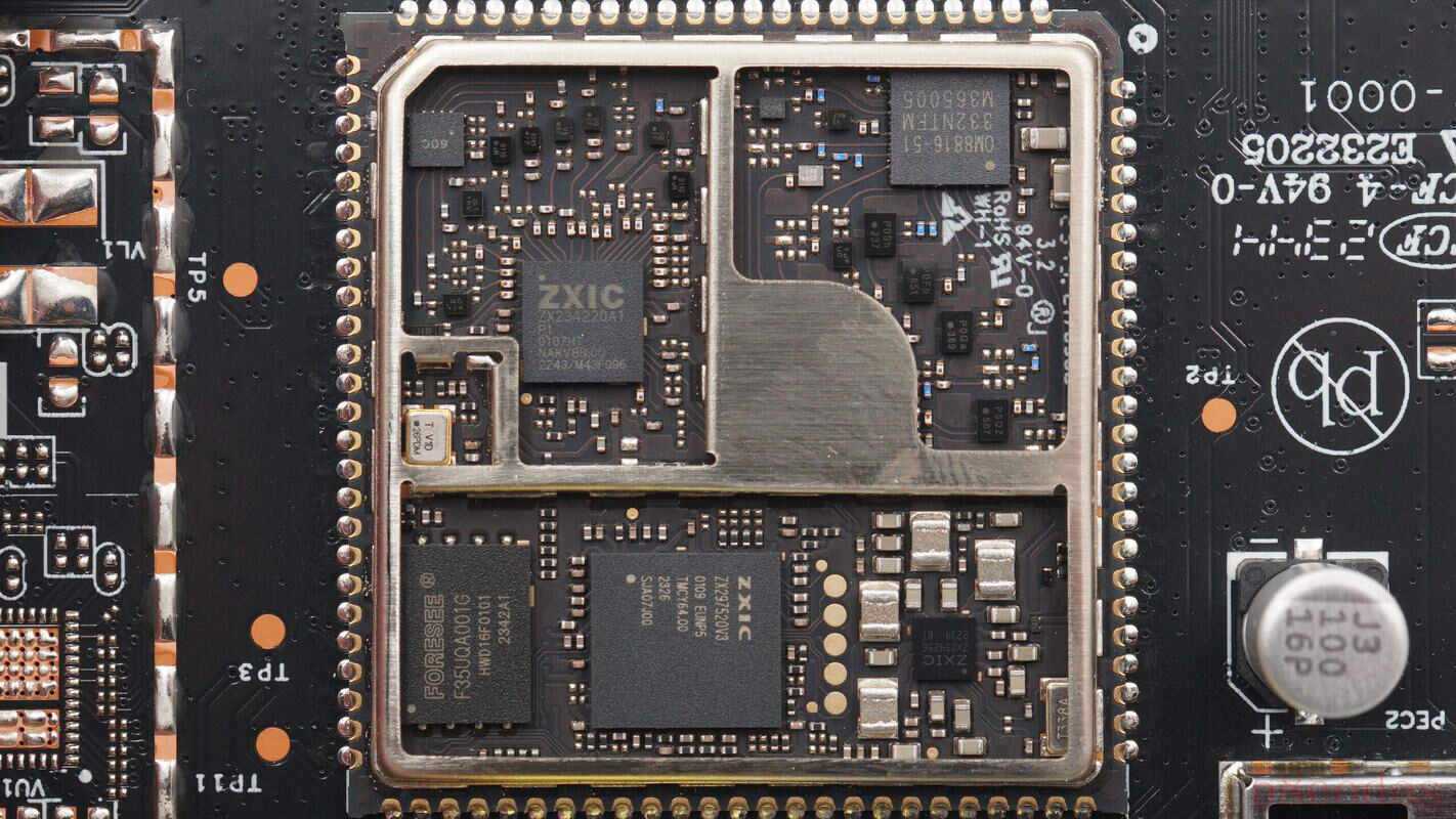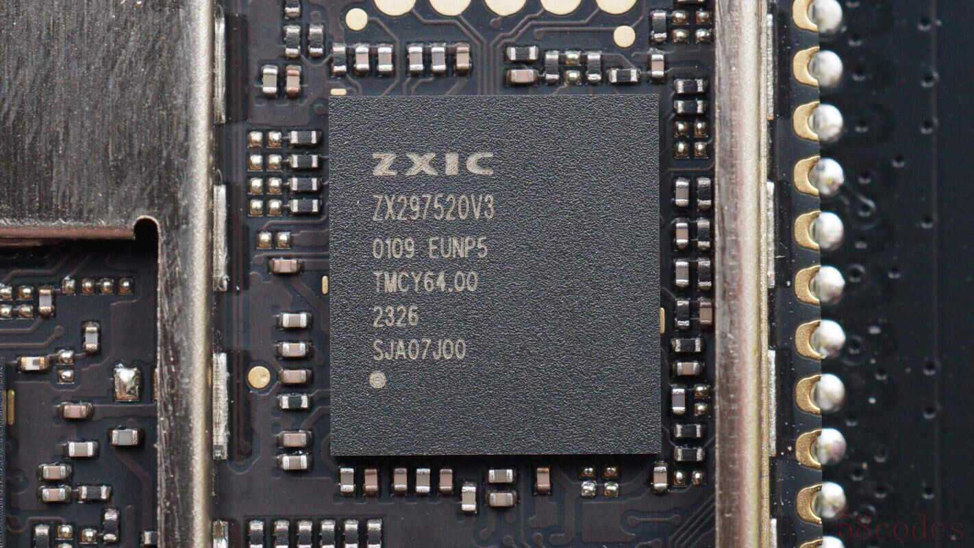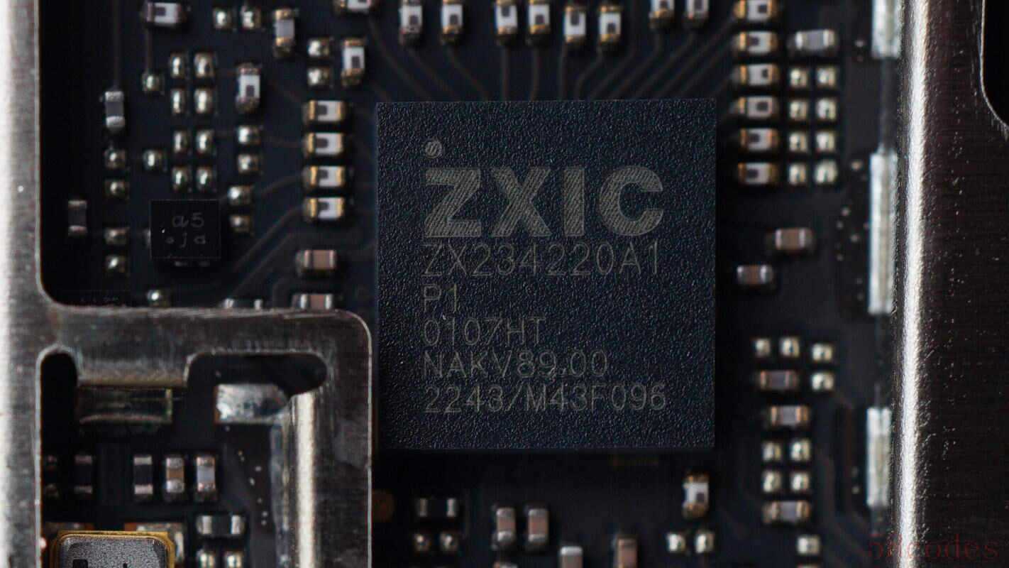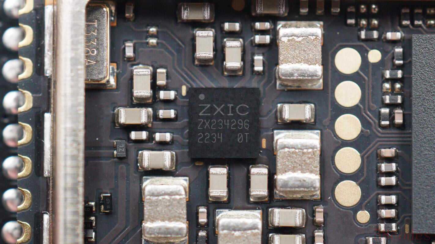 PMIC同样来自ZXIC中兴微电子,型号ZX234296,外置四路电感,左上角是时钟晶振。