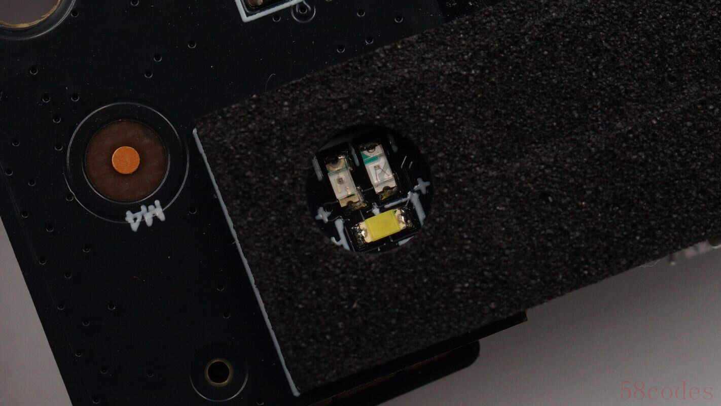 另一面焊接一个屏蔽罩以及天线的连接器。底部设有指示灯,并设有遮光泡棉。