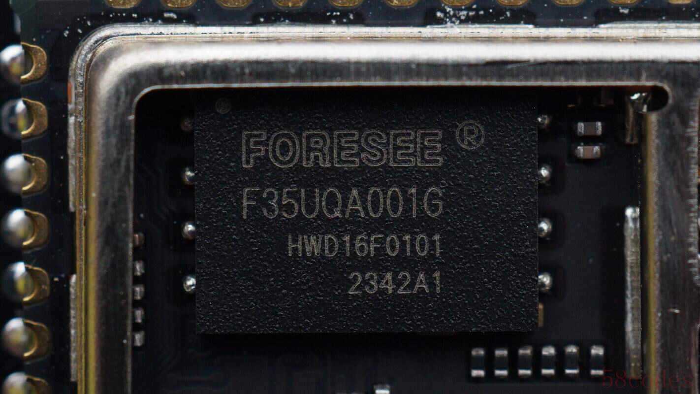 存储器来自江波龙,型号F35UQA001G,为SLC NAND,容量128MB,SPI接口。