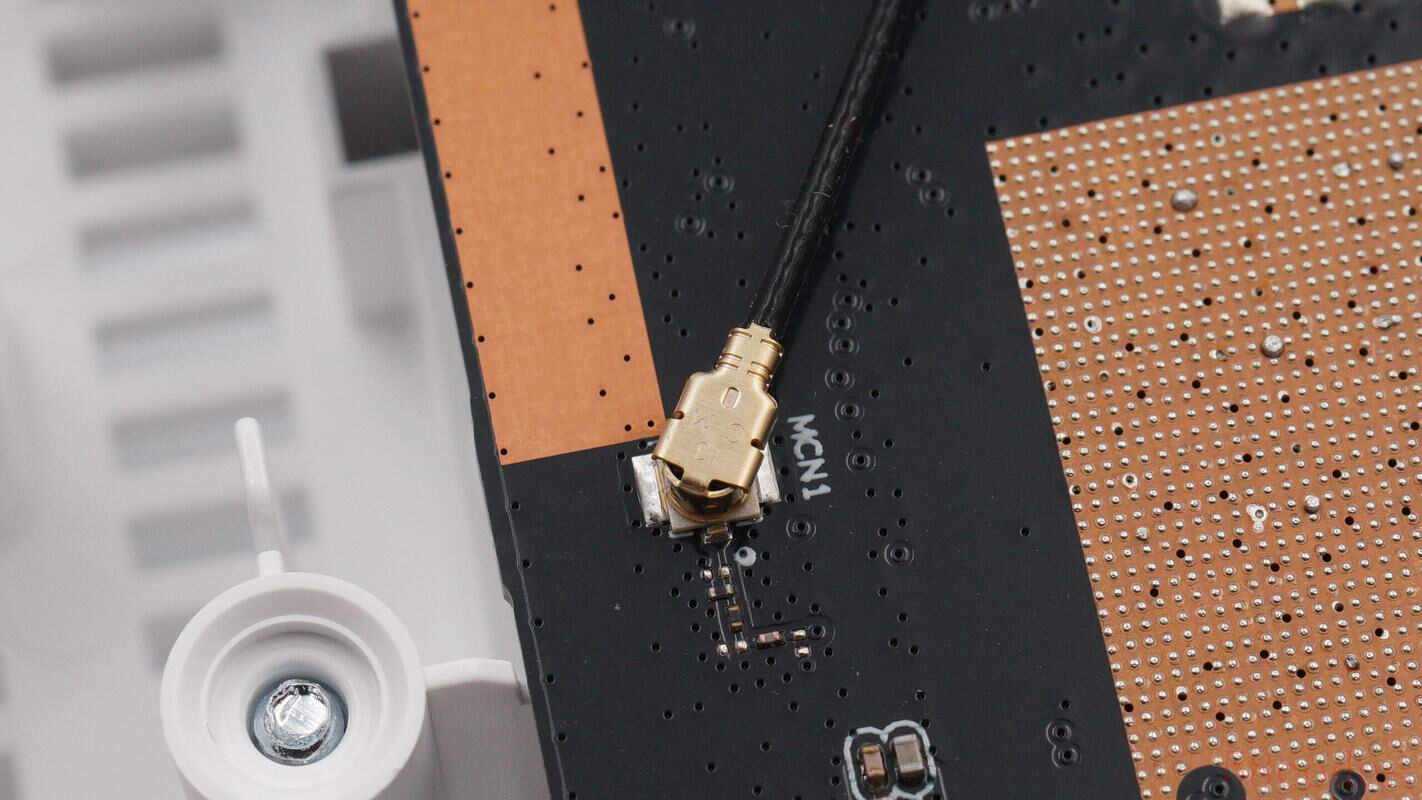 拧下固定螺丝,断开天线连接器,取出内部PCBA模块。