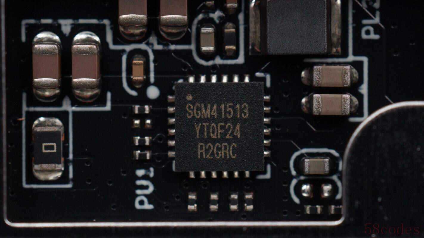 内置电池充电芯片来自圣邦微,型号SGM41513,支持3.9-13.5V输入电压,支持3A充电电流,并且具备NVDC路径管理。