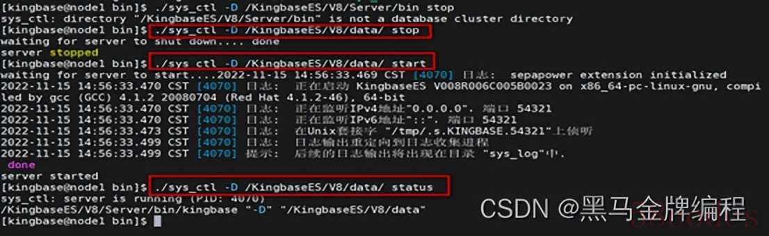 sys_ctl -D /KingbaseES/V8/data/ start #启动