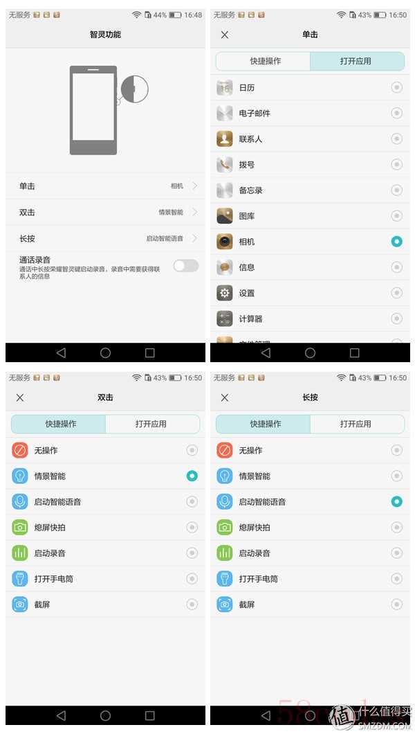 智灵键默认的双击是打开情景智能,这其实就像是一个小秘书,会在你的手机里自动寻找相关信息,然后在通知栏弹出通知你。笔者在Mate8里最常见的情景智能就是提醒你上班,大概路上还有多少时间。