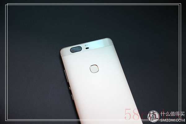 背面的顶部则是这次荣耀V8的主打卖点:双1200摄像头(黑白加彩色)、双色温闪光灯以及激光对焦模块,具体的效果后面再详细评测。