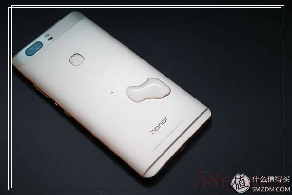 这一次荣耀V8背壳还加入了氟化液防水技术,有效的减少水滴、手汗等生活常见情况对手机造成的伤害,笔者冒着不能保修的风险,亲自演示一下,可以看到涂层的疏水性还是很强的。
