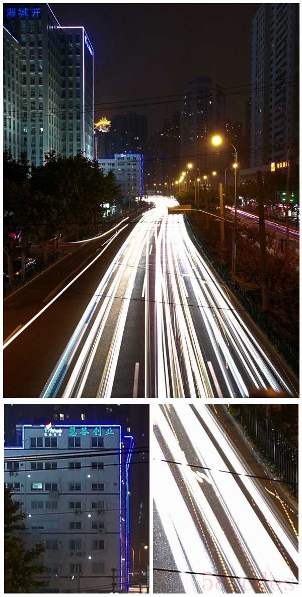 接着是最近很多手机都有的流光功能,这个功能就是在一开始先记录一下照片,然后在慢曝光的情况下,只记录画面中亮度超过一定的物体,比如灯光。这跟时单反的慢曝光是截然不同的,虽然单反也能拍出类似的效果,但是单反在慢曝光的过程中,是记录整个画面的进光量,这样会导致控制一些背景可能被拍得很亮,而荣耀V8的这种方式,在慢曝光的后期只记录亮度阀值以上的光线,就能将背景的亮度压制在一个合理的范围。