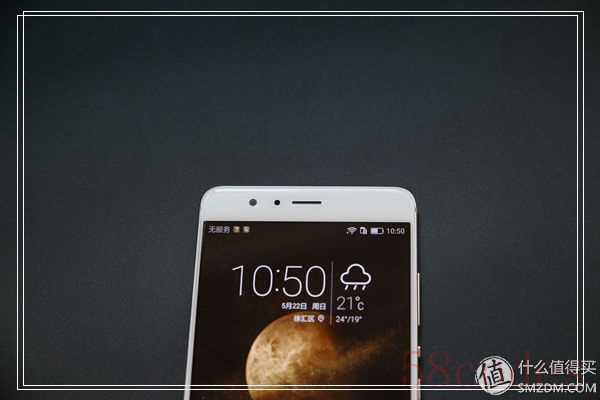 荣耀V8正面顶部的开孔并没有采用对称式的设计,这也是荣耀的传统了,从左到右依次是前置800万像素摄像头、传感器与听筒。