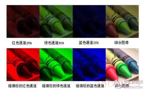 有50%的绿色,而红色和蓝色各占25%。这样做的原因是人眼对绿色更敏感,能分辨出更多的细节。你观察一下周围的环境就会发现这并不奇怪,另外绿色也占据了可见光谱中最重要和最宽的位置。现在我们的灰度感光元件得到的是经过彩色滤镜过滤的灰度值。图像由彩色的马赛克构成。但我们想得到的是每个像素都记录了全部的色彩信息的图像,而不是这样的马赛克效果,那么就需要一个软件来进行拜耳阵列解码(去马赛克)或者叫做彩色插值。那些丢失掉的色彩信息经过对相邻像素的色彩信息分析之后被重新估算出来。