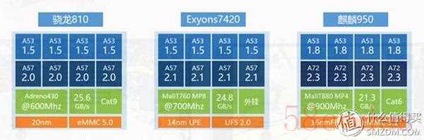 众测的这款是荣耀V8的标准版,也就是处理器为麒麟950(四核A72 2.3GHz+四核A53 1.8GHz+微智核I5+Mali-T880),内存4GB,存储32GB。其实在2015上半年的CPU大战中,华为的麒麟920一直是被三星Exyons7420,以及高通的骁龙810吊打,主要原因是当三星已经用14nm工艺加持的时候,荣耀依然还是用了上一代的28nm工艺,并且存储也依然停留在eMMC4.5,而不是友商都采用的eMMC5.0。不过到了2015年下半年,华为推出了麒麟950之后,终于扬眉吐气了。不仅上了台积电16nm制程,同时也把存储提升为了eMMC 5.0,虽然在读写速度上还是不及UFS 2.0,但也算是主流的旗舰配置了。不过随着骁龙820的出现,麒麟950在CPU上的优势也被追回,而GPU则一向是麒麟的弱势,希望今年华为能出新的旗舰芯片吧。