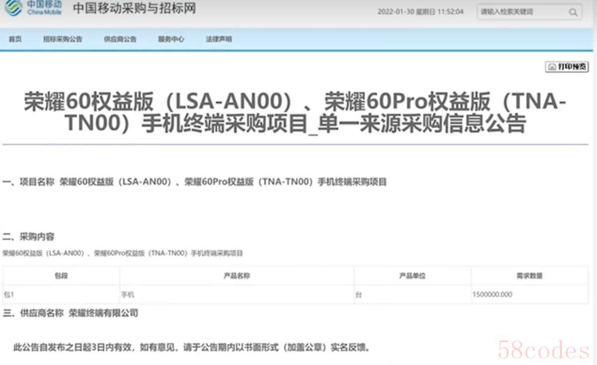 2022年1月,中国移动花了50亿,一口气订购了150万台荣耀60系列,4月,又采购了200万台Magic4系列的手机,总价值高达80亿。